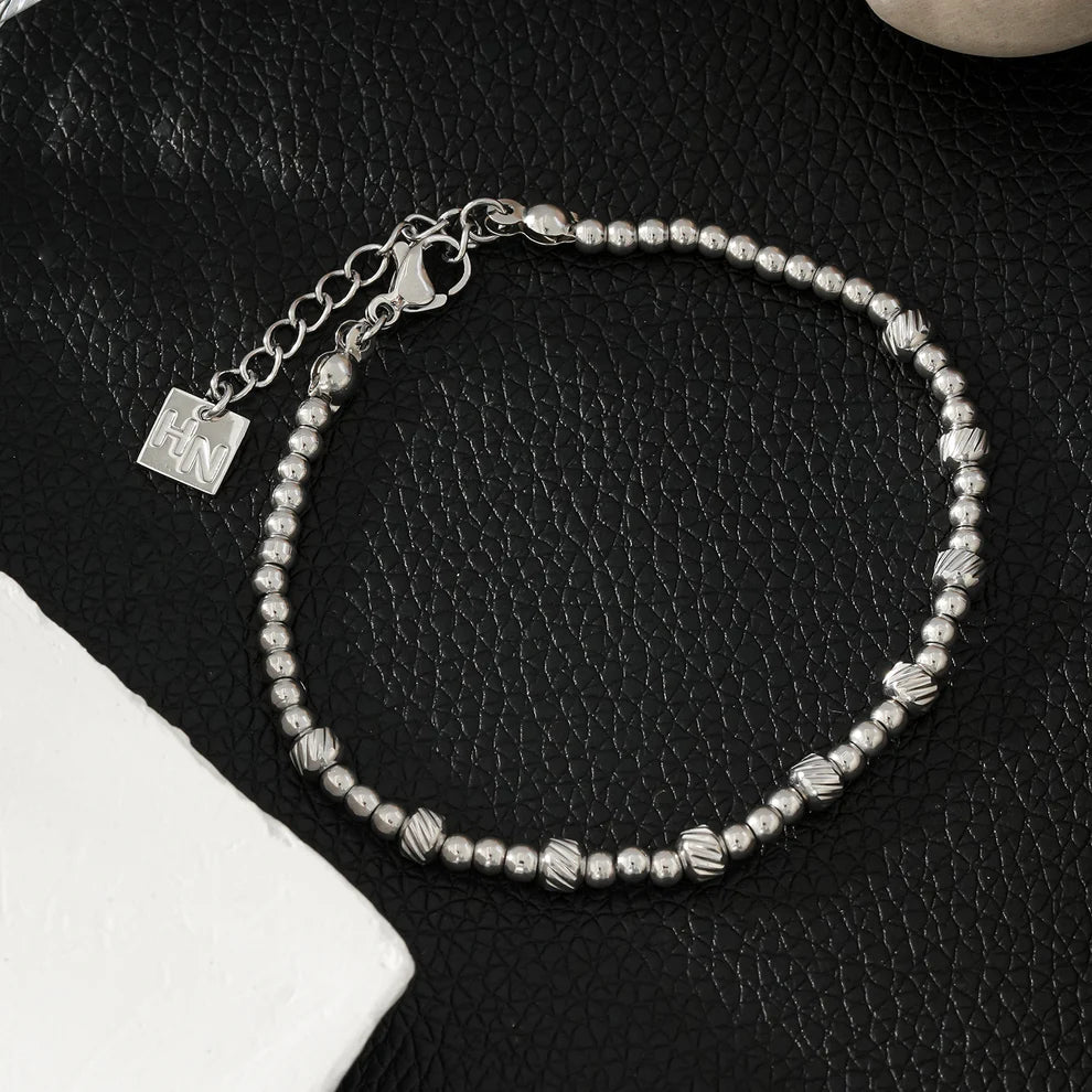 Indulge in the epitome of elegance and contemporary flair with this 18K white gold layered chain bracelet – a fusion of sophistication and on-trend aesthetics, resulting from the blend of two different beads. Designed for both the fashion-aware, and the classic dresser, this chain necklace complements any occasion – be it casual outings, special events, or as an everyday style piece. It's on-trend yet classy design effortlessly merges with any style or outfit.