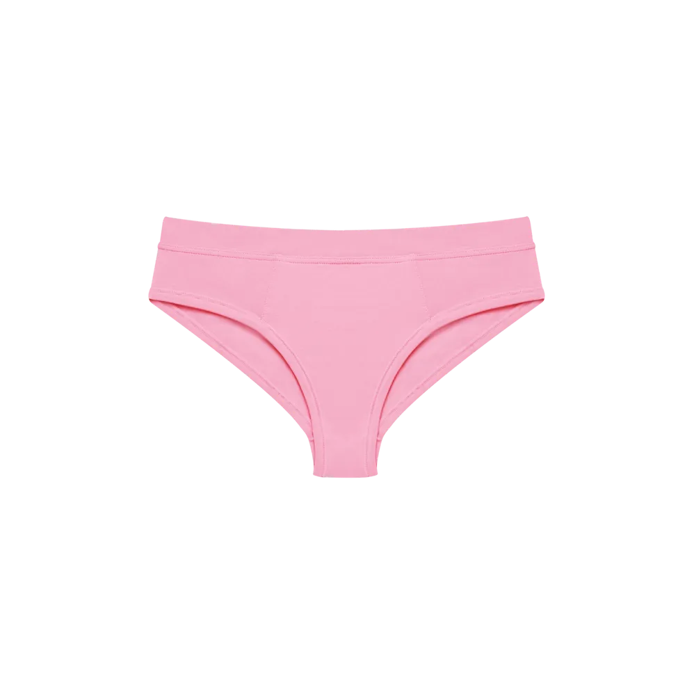 Our cheekiest style outside of a thong, this is a flattering, butt-contouring cut with half-cheek coverage. Soft yet structured, it stays put without digging in. The Cheeky has a low-mid rise with a deeper side, cuffed waistband, and visible front panel.