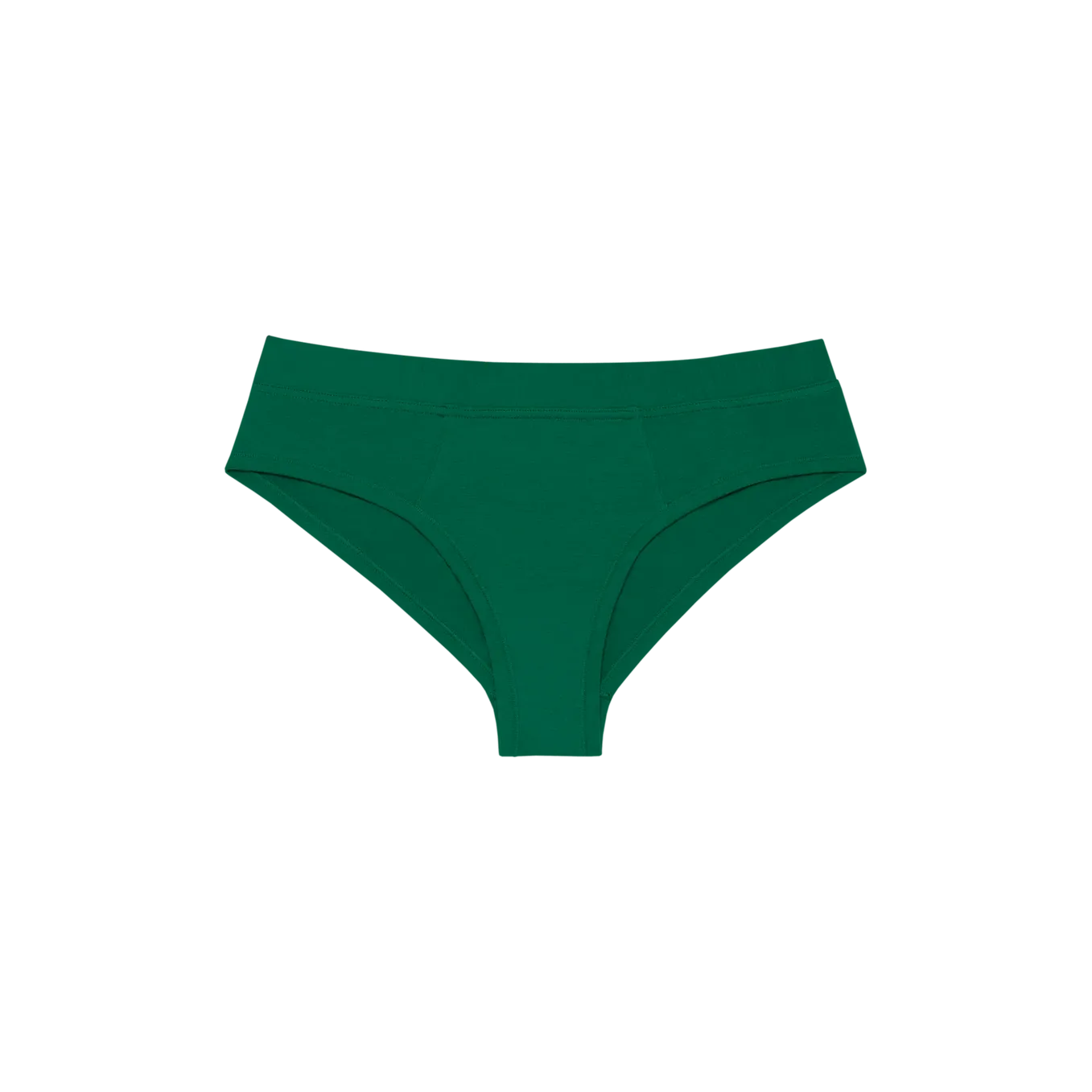 Our cheekiest style outside of a thong, this is a flattering, butt-contouring cut with half-cheek coverage. Soft yet structured, it stays put without digging in. The Cheeky has a low-mid rise with a deeper side, cuffed waistband, and visible front panel.