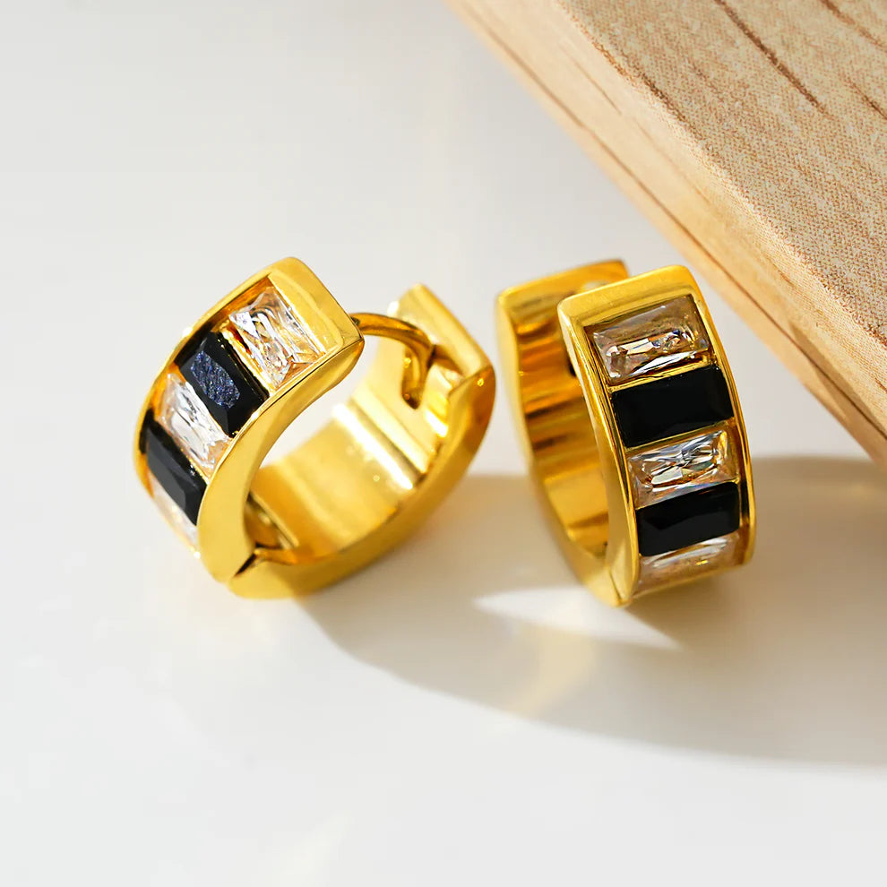 Step into the world of timeless glamour with our exquisite Retro Black & White Embedded Zirconia Mini Hoop Earrings. These miniature works of art effortlessly blend vintage charm with contemporary sophistication, adding a touch of allure to any ensemble.