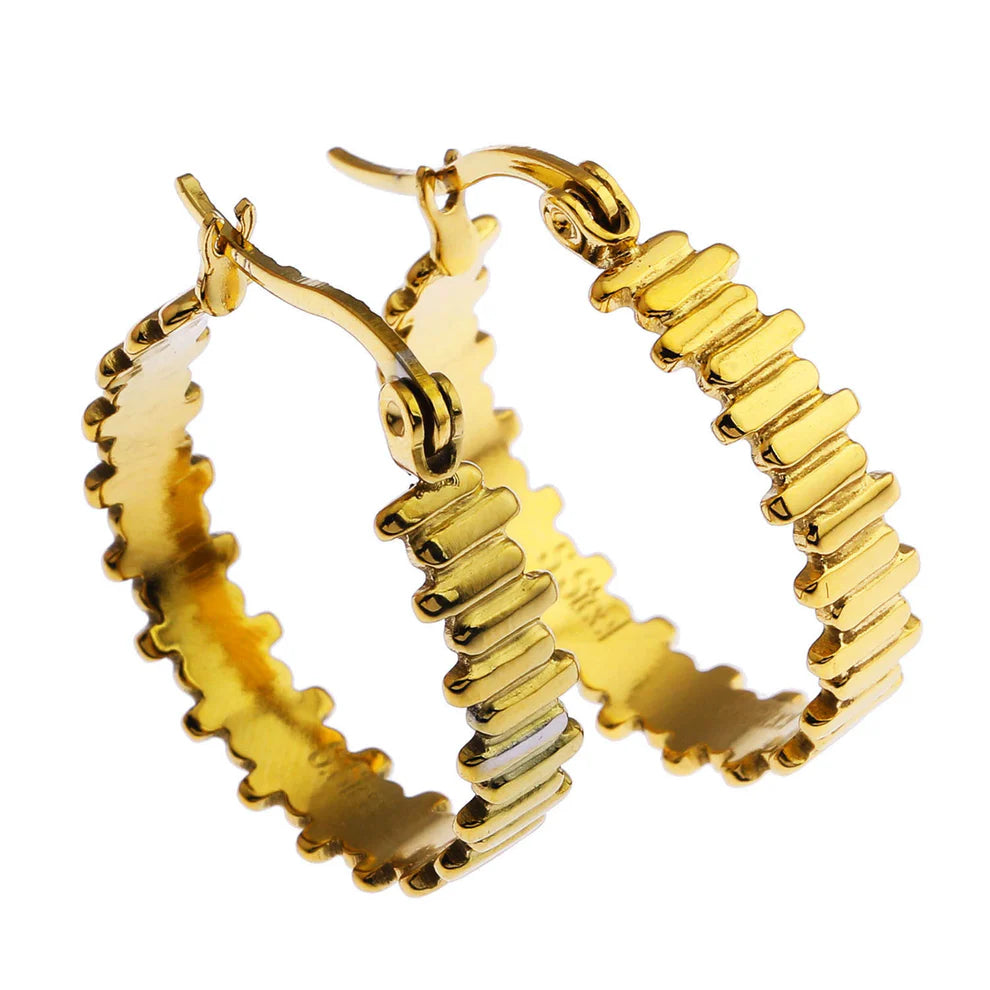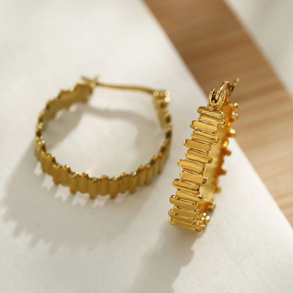 Inspired by contemporary abstract art. Elevate your style quotient with these uneven laddered design hoop earrings.
