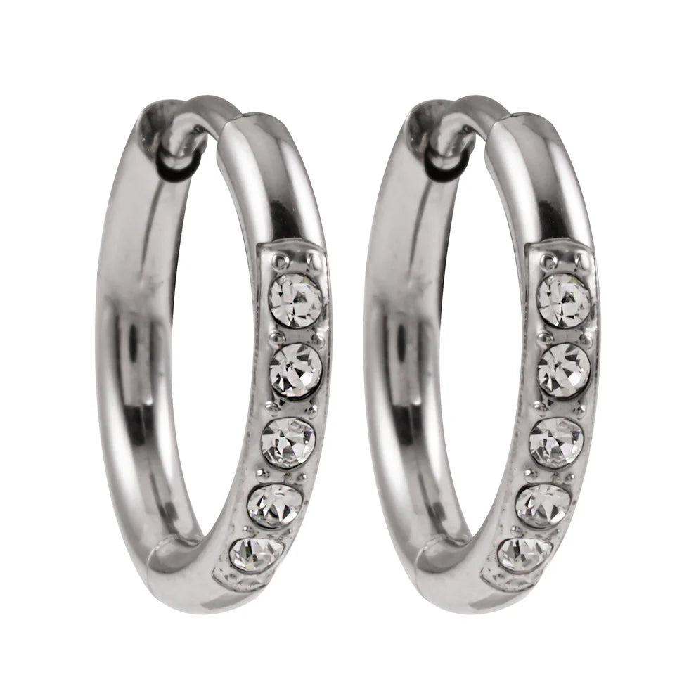Subtle elegance. A row of sparkling pavé zirconia gemstones add a refined touch to these classic hoops. Work or play, these cute beauties are always in style.