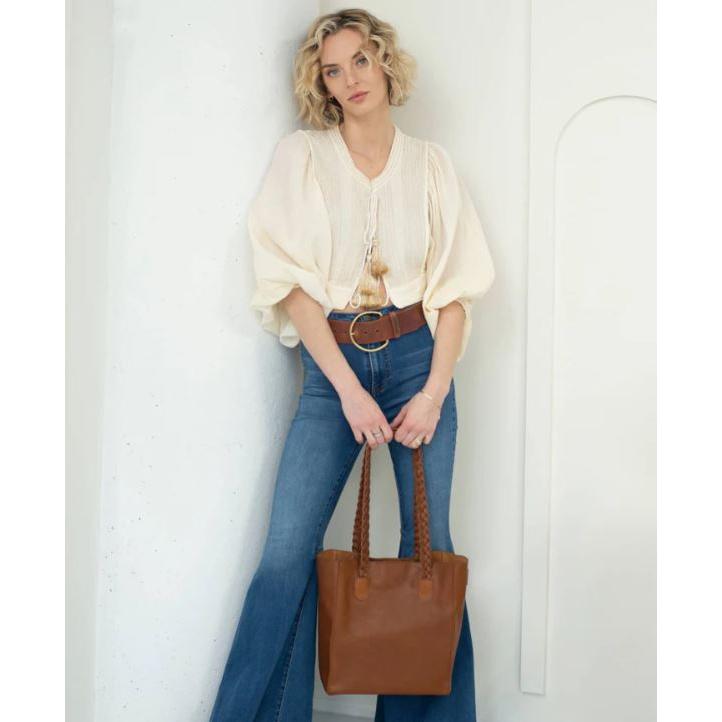 Our Ana bag is a new smaller sized tote perfect for daily errands and stylish gatherings. Handcrafted from our luxe Vachetta leather from Tuscany. Finished with woven leather straps hand-braided in our Toronto workshop.