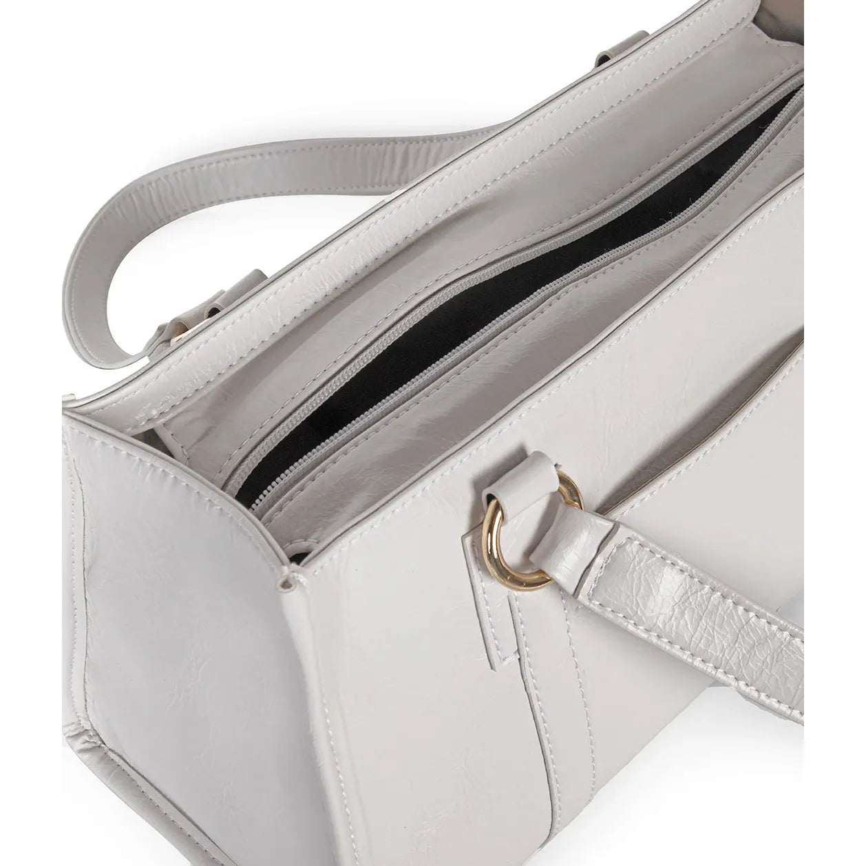 Satchel with a top zipper closure, functional buckles at the handles to adjust the length, and multiple interior pocket
