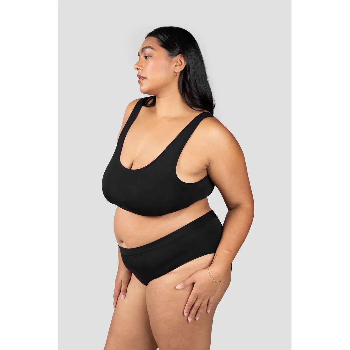 Sporty, hardware-free and oh-so-soft, the Sporty Bralette is the perfect fit for working out or laying down. Lined in the front with a single-layer back, this classic scoopneck is comfy layered or worn on its own. Featuring a supportive underband, wider straps, and ultra-soft seams that won't dig in.