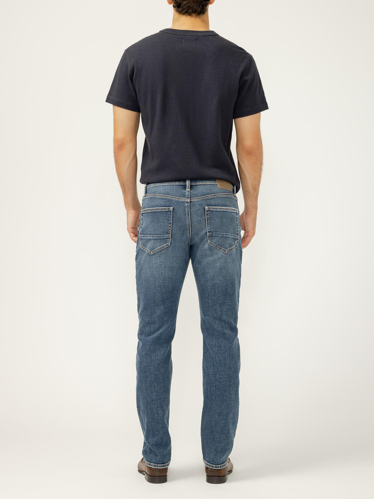 Machray is a modern take on the athletic fit jean, featuring a longer saddle and a slim-yet-spacious fit through the hip and thigh. Built for a close-but-comfortable sporty look, it’s finished with a classic straight leg opening for a sleek finish.