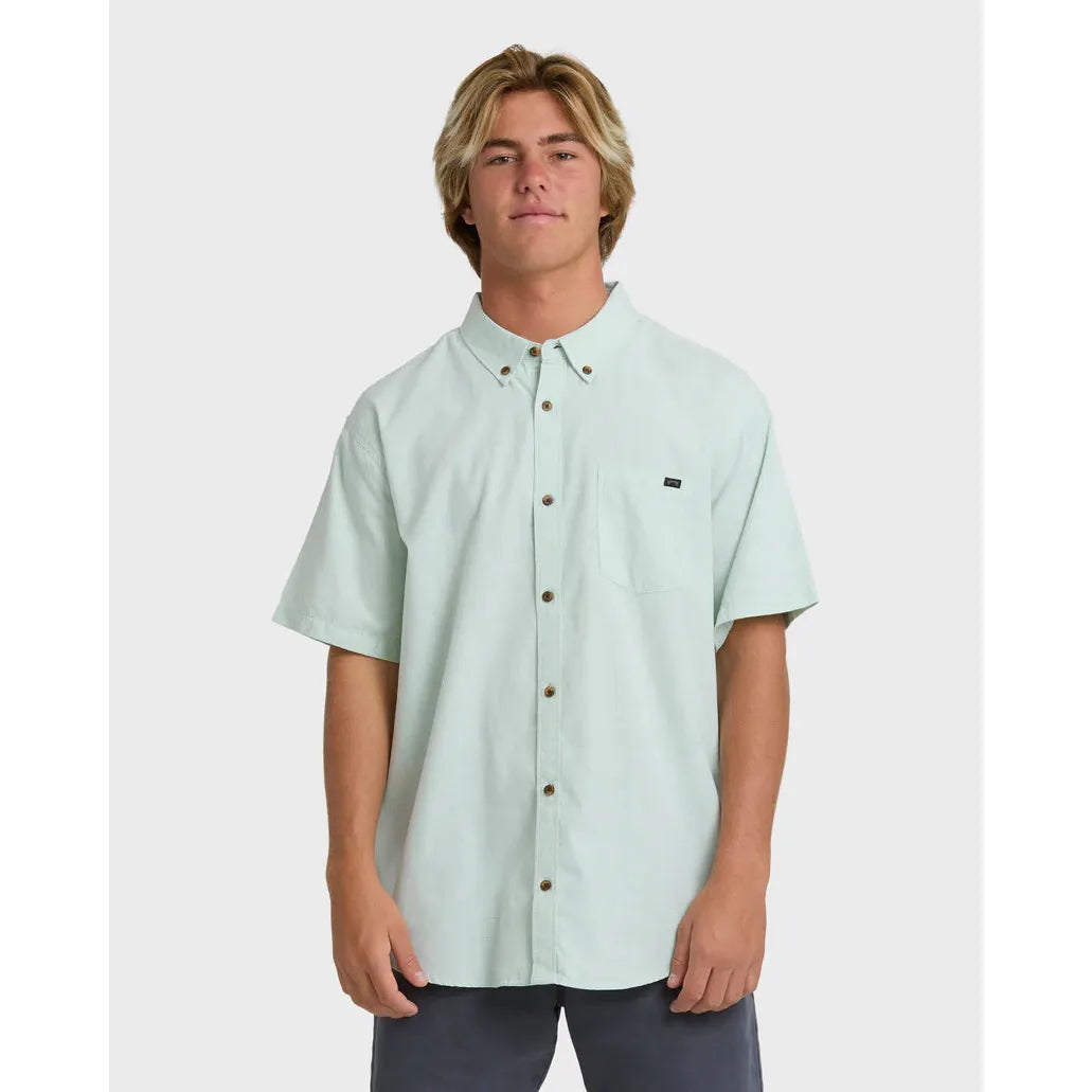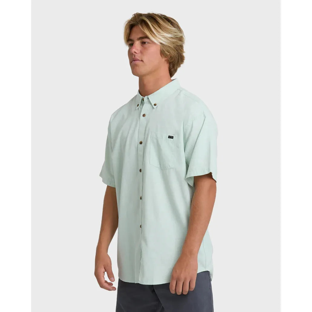 Stay ready for whatever the day brings with our All Day Short Sleeve Shirt in Granite Green. This regular fit short sleeve shirt adds style with its front buttons and practical chest pocket, while the soft cotton-poly blend ensures comfort and shape. Subtle woven labels tops it off as a warm-weather essential.