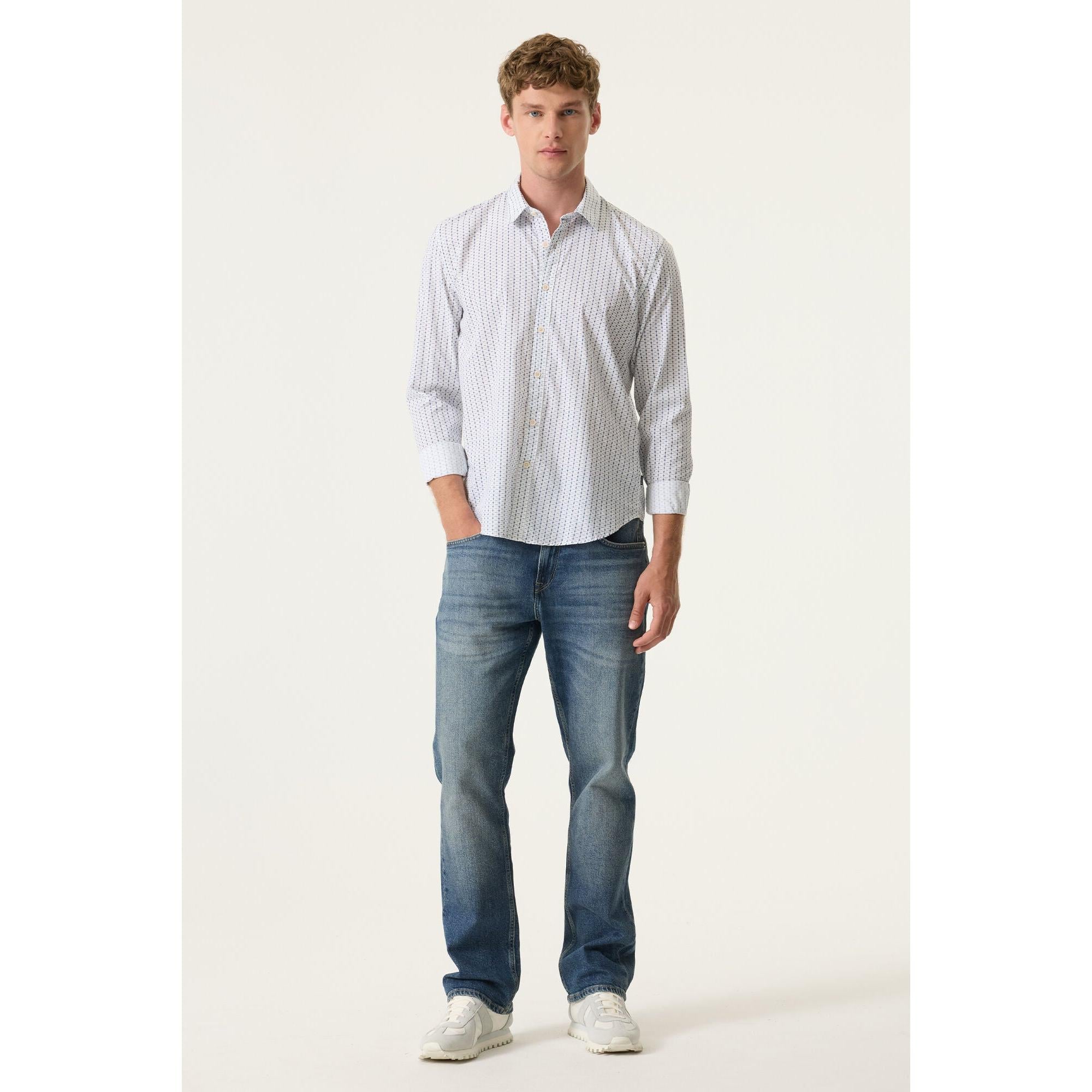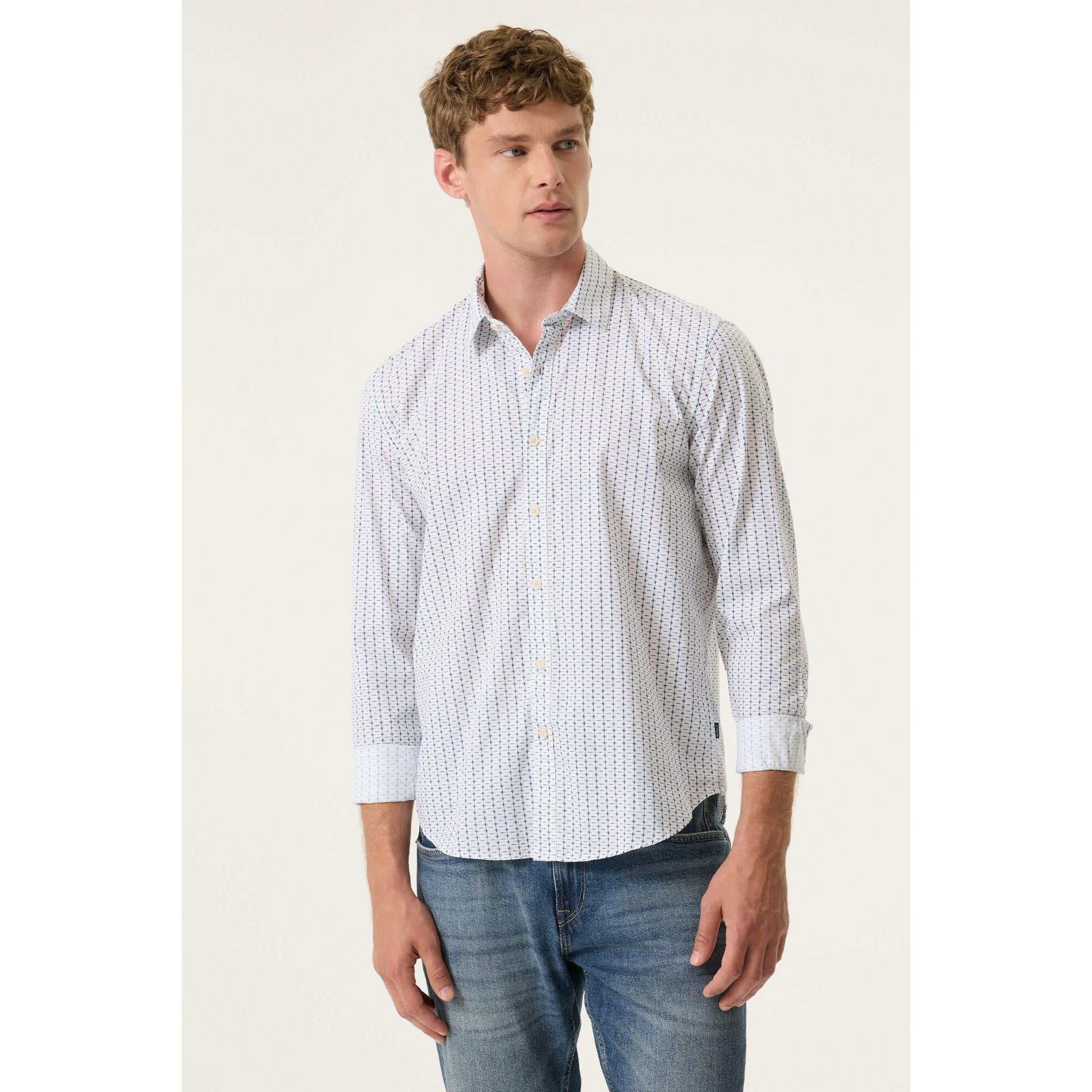 Shirt with all-over print. This shirt features a button closure, long sleeves, and a regular fit. This item is made of 100% cotton.