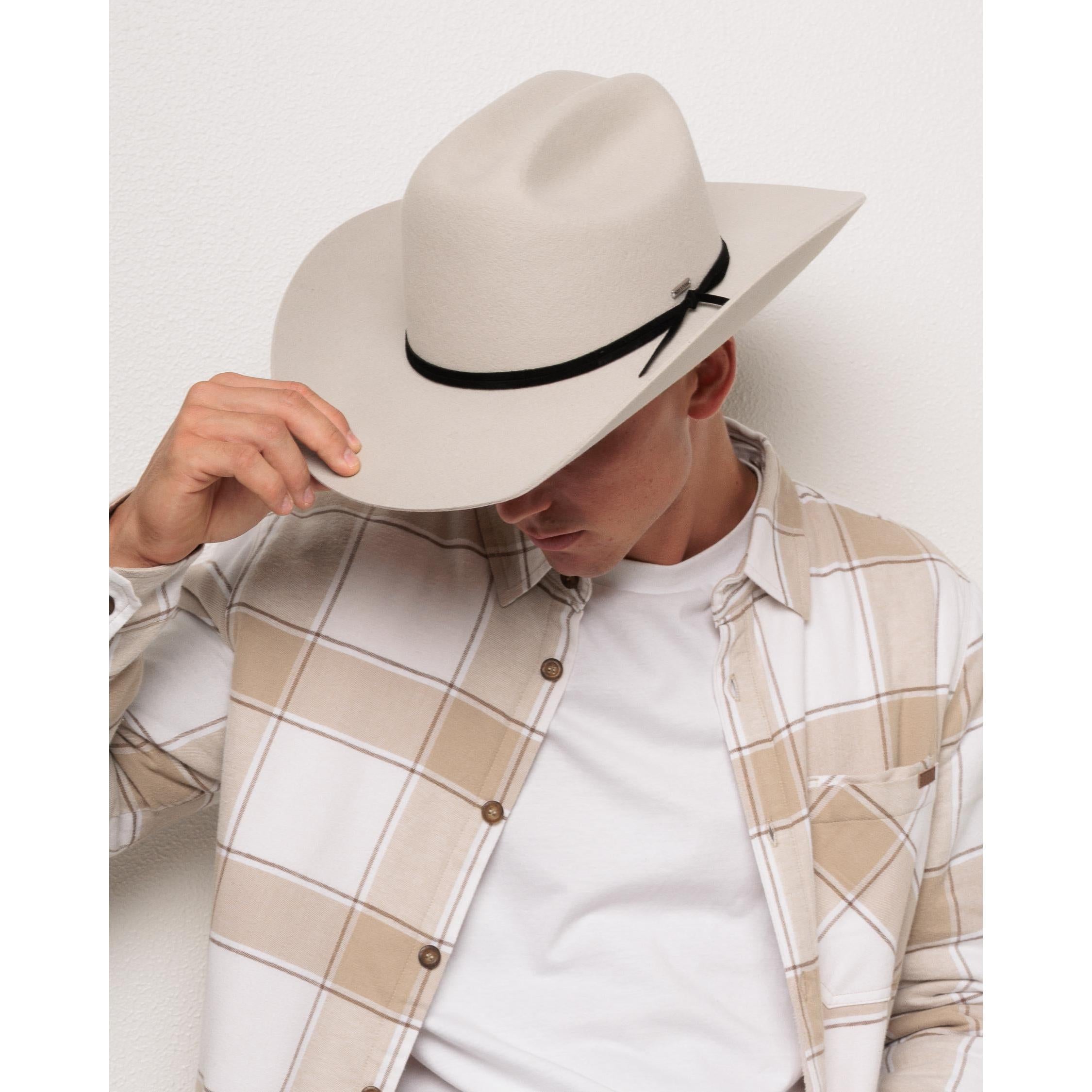 Outdoor adventures call for an iconic cowboy hat like the Laredo WTHR GUARD™—crafted from water repellent Australian wool felt, it's built to withstand the elements. This unisex style stays true to Western tradition with a cattleman crown and side roll brim, yet allows for modern versatility. Finished with a double-wrapped leather band, it adds a touch of rugged sophistication to any outfit.