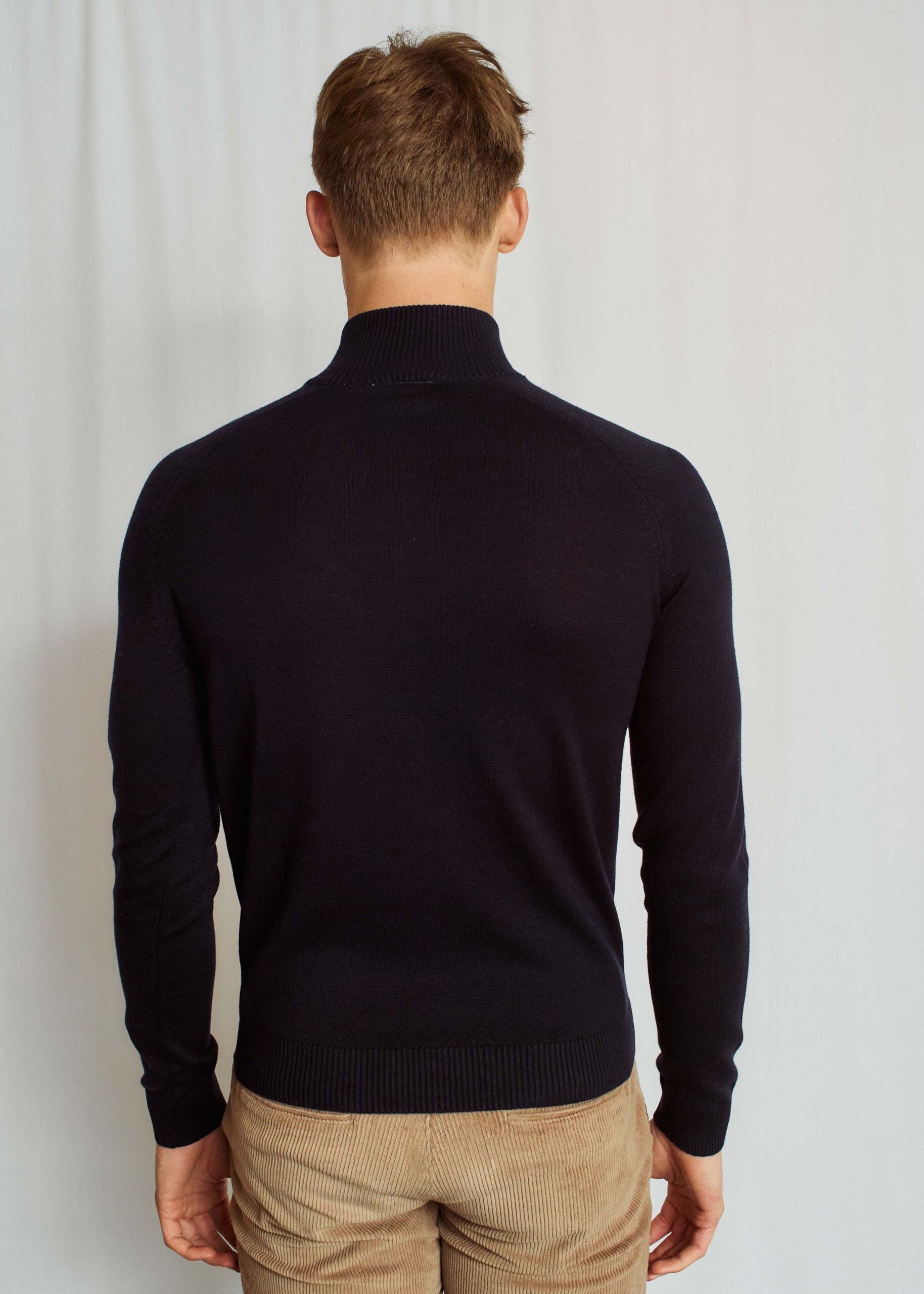 A classic fine-knit half-zip in a soft blend of extrafine merino wool and acrylic. Designed with raglan sleeves and a gunmetal-look zipper for a modern and relaxed expression. Fits into any wardrobe.