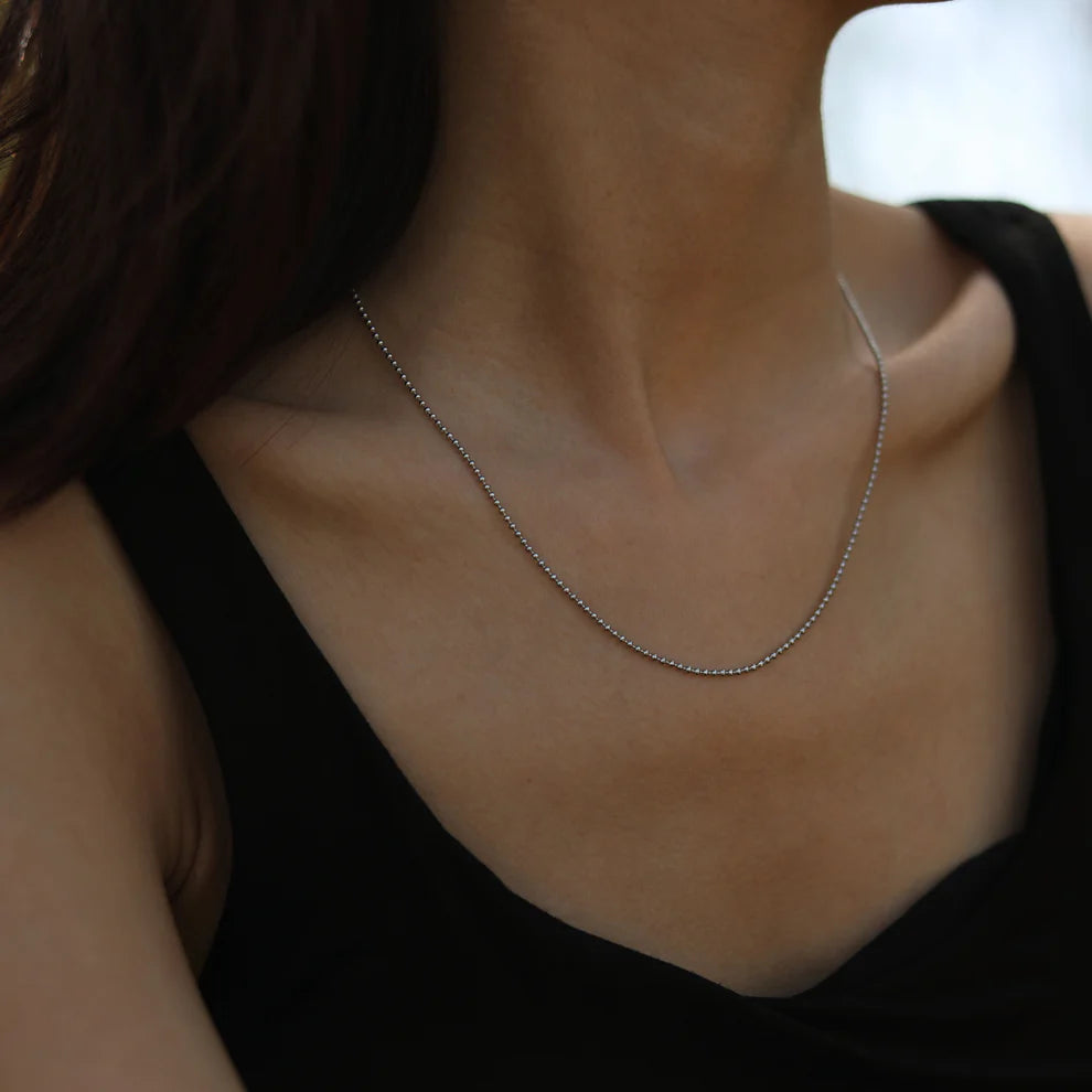 Less is More. This simple beaded chain will add a simple yet stylish touch to your outfit. Wear it solo as a minimalist piece or make it part of a layered set. Day or night, the look is right.
