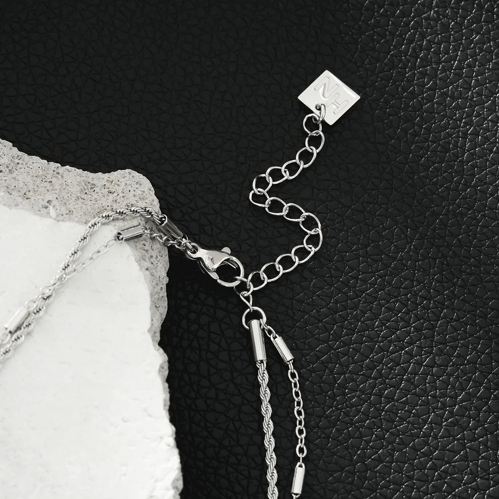 Turn heads in our mixed chain layer necklace. Simple, yet sophisticated, this pre-layered 2 strand necklace will up your style quotient.