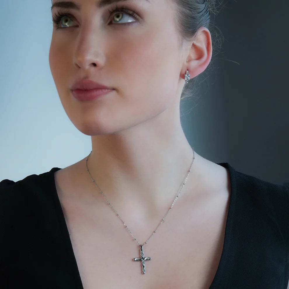 Express your individuality with a touch of sophistication through our Dainty Beaded Chain Necklace featuring a Zirconia Embedded Textured Cross Pendant. The beaded chain adds an air of delicacy, while the cross pendant's zirconia accents provide a subtle, yet captivating, brilliance.