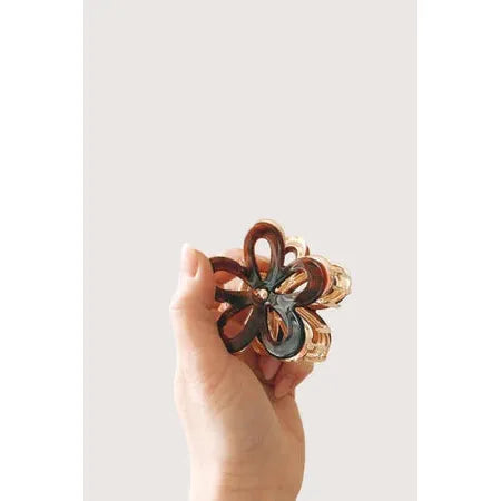 Elevate your everyday style with our chic and sustainable Flower Gold Claw Clip from Kitten Claws Clips. This must-have accessory offers a perfect blend of trendy appeal and practical functionality, bringing a touch of vintage glamour to any look.