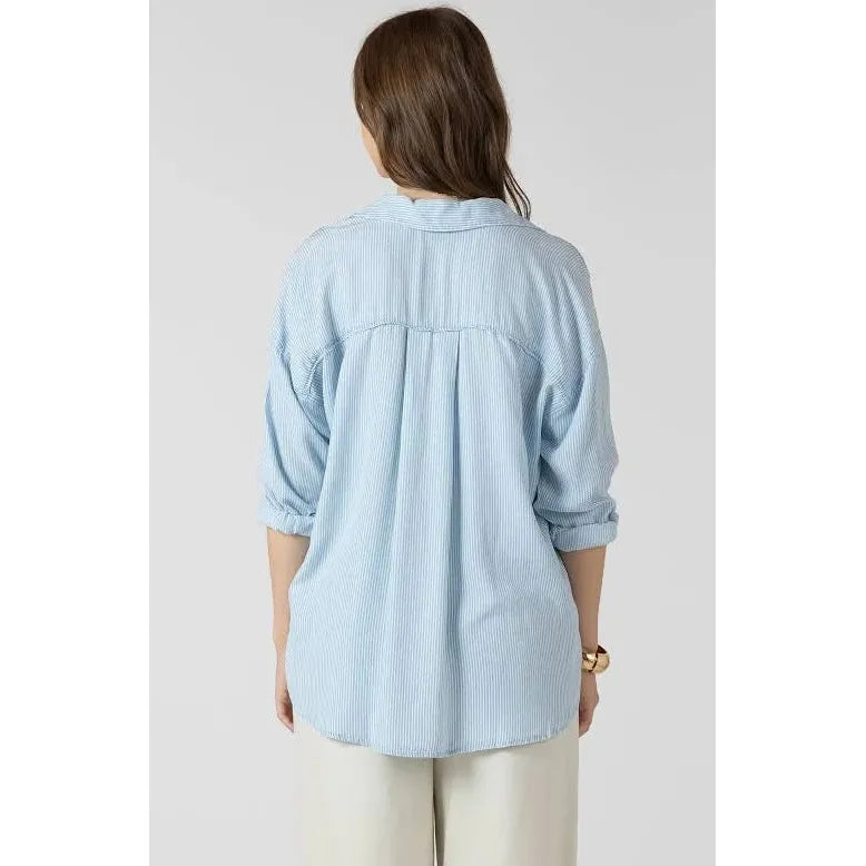 Embrace effortless, breezy style with the Dex Relaxed Button Front Shirt in the refreshing "Coastal Blue Stripe." This shirt captures the essence of seaside charm, combining a classic pattern with a modern, easygoing silhouette. It's the perfect piece for transitioning seasons, ideal for brightening up your workwear, weekend casuals, and everything in between.