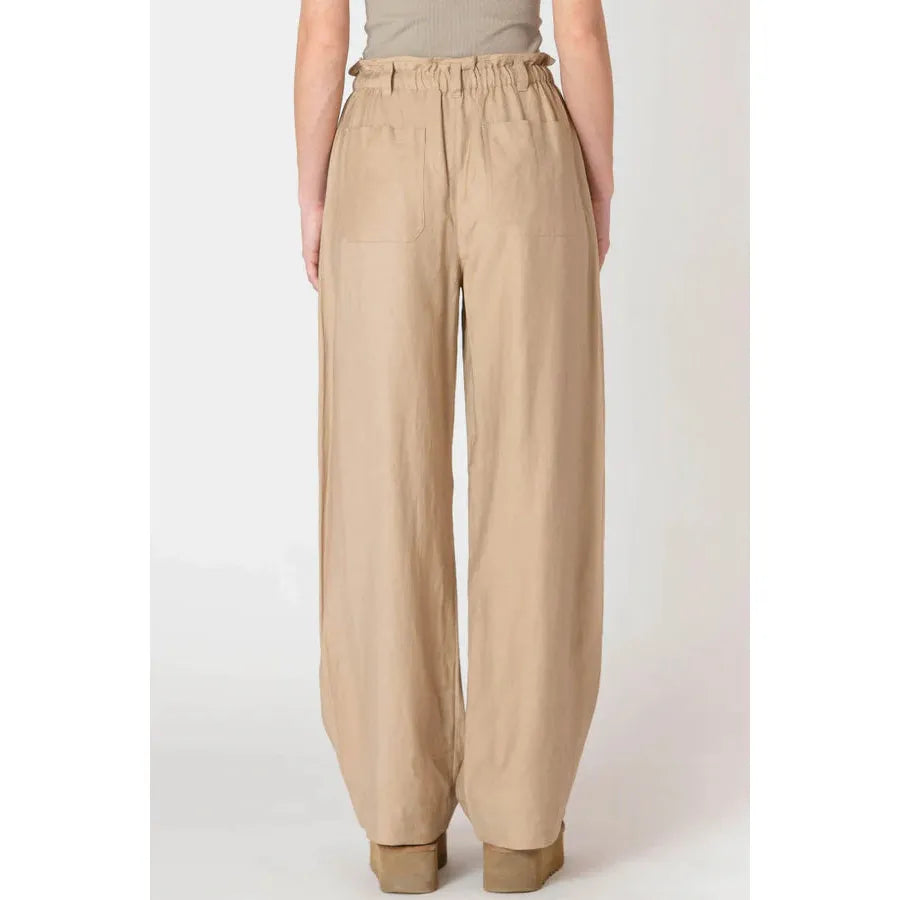 Designed for comfort and style, these pants feature a relaxed wide-leg silhouette that moves gracefully with you. Crafted from lightweight, breathable fabric, they offer effortless elegance and versatility, perfect for both casual outings and refined occasions. The subtle safari-inspired hue adds a timeless, natural touch to your ensemble.