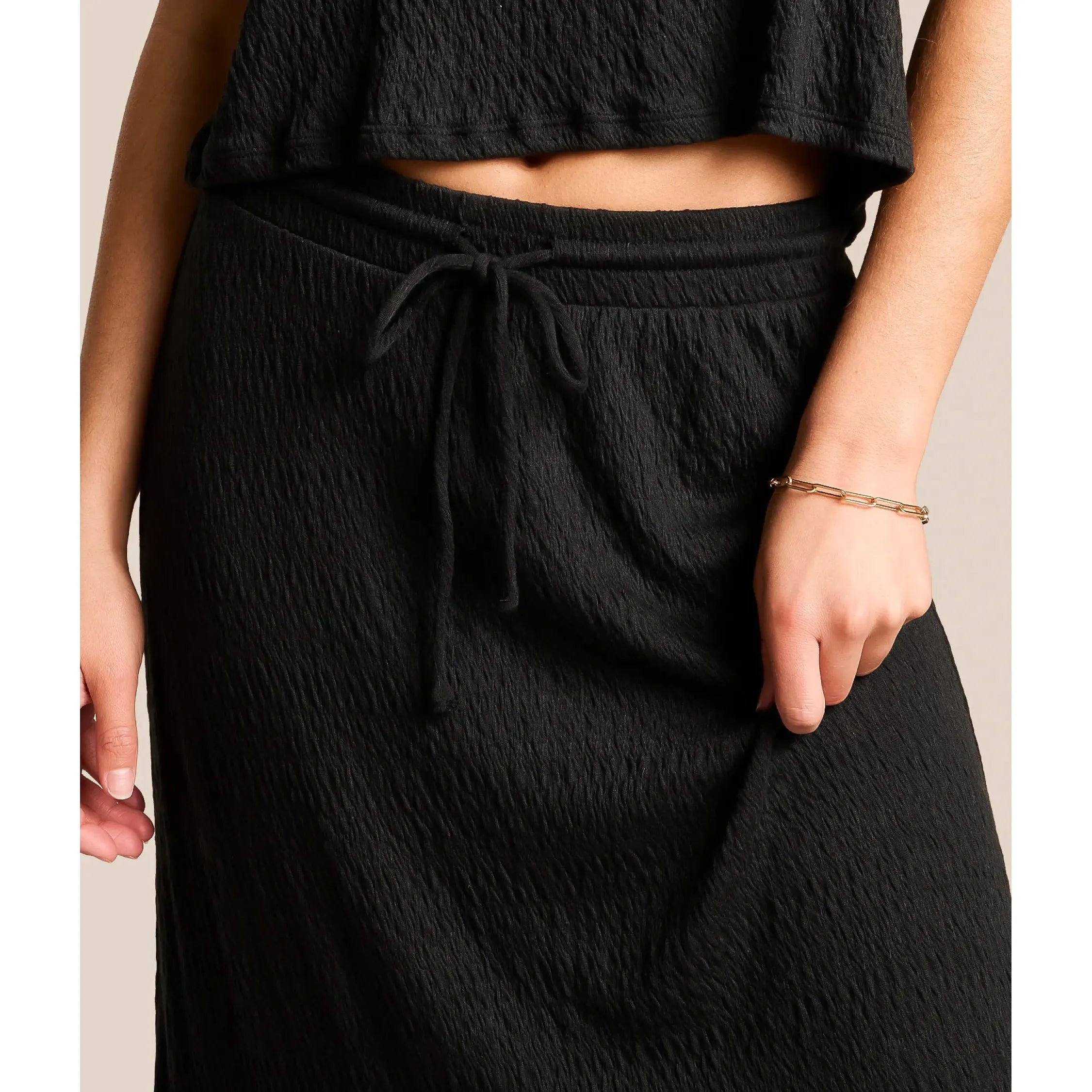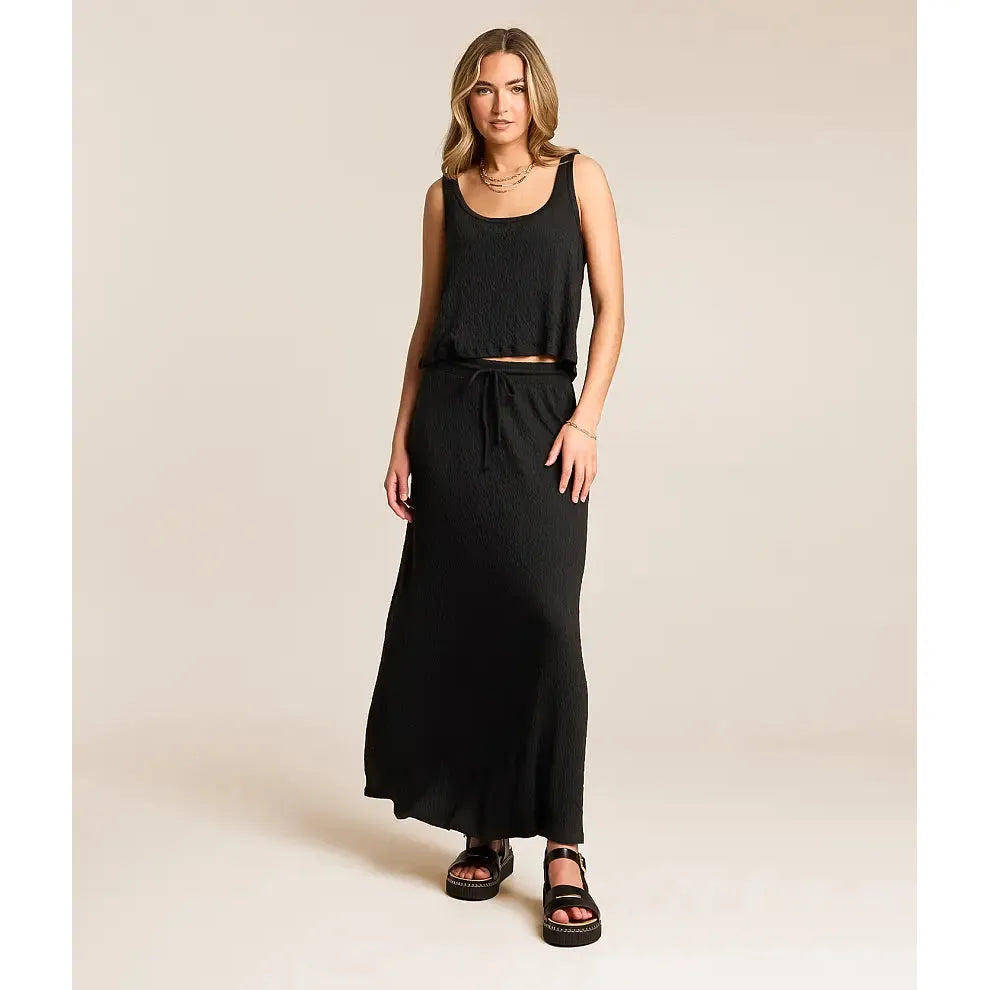 The Adris Maxi Skirt from Z Supply features a flowing silhouette in soft, textured fabric that drapes beautifully. The adjustable drawstring waist provides a customizable fit, while the full-length design creates a flattering, laid-back look. Discover timeless elegance with the Z Supply today!