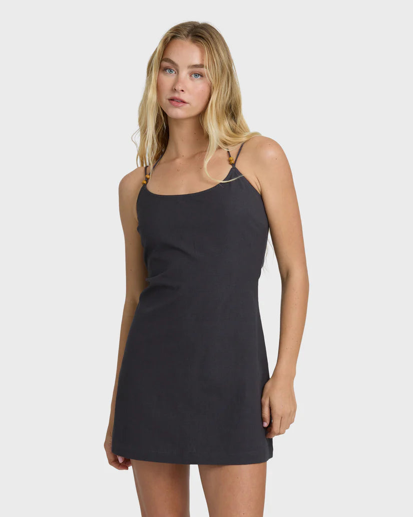 Breezy summer vibes come alive in our cotton-linen mini dress with body-skimming silhouette. The double tie straps adorned with wooden beads bring beachside charm, while the invisible back zipper ensures a clean look. Perfect for sunset strolls or daytime adventures in a breathable natural fabric blend.