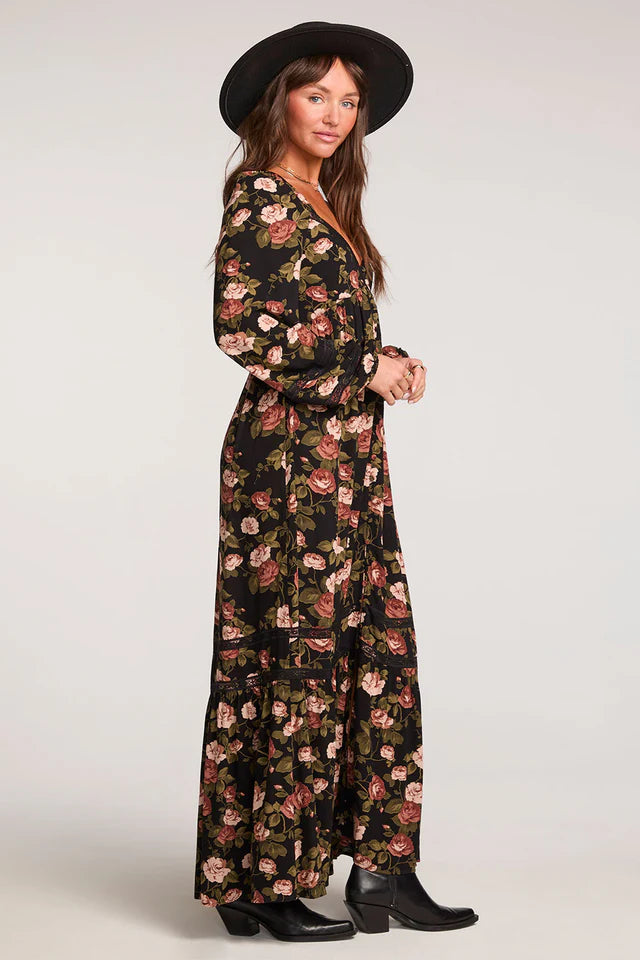 The Tammie Maxi Dress exudes sophisticated romance with its deep V neckline and long sleeves that balance elegance and allure. The tiered full skirt adds a playful, flirtatious touch while flowing gracefully with every movement. Presented in a bold botanical print, this dress effortlessly flatters your silhouette, making it perfect for occasions where you want to make a confident, stylish impression.