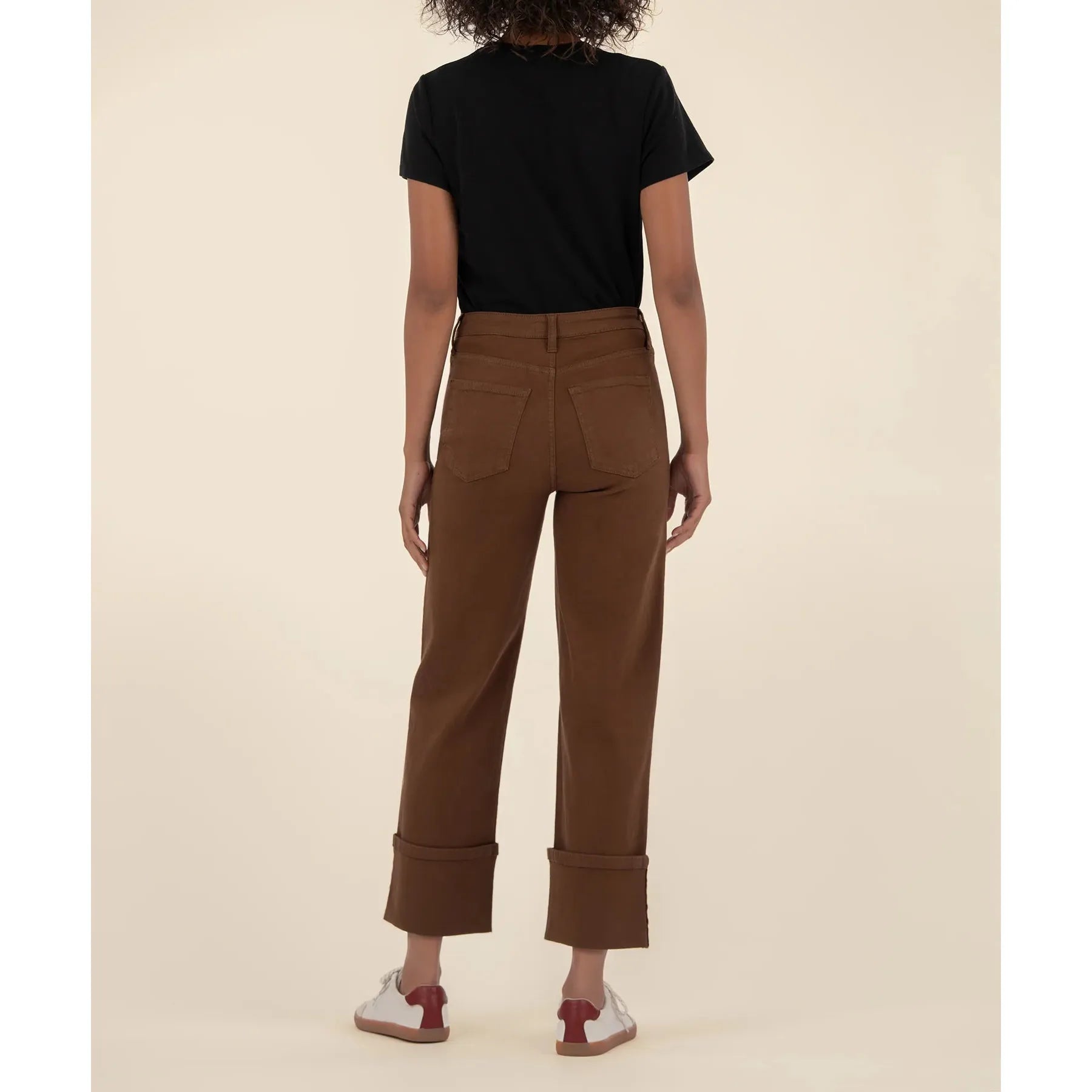 These high-rise straight-leg pants come in a rich cafe color and feature stretchy material for comfortable wear. A versatile piece that blends classic fit with cozy, stylish vibes.