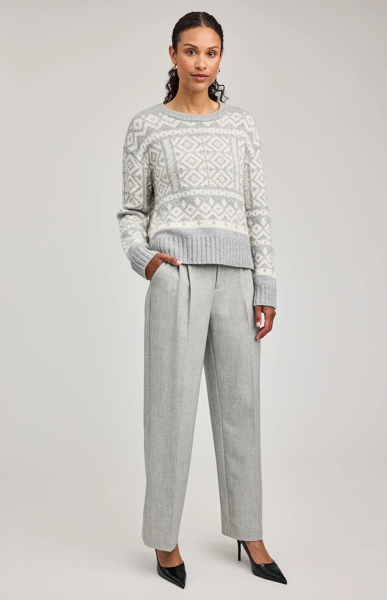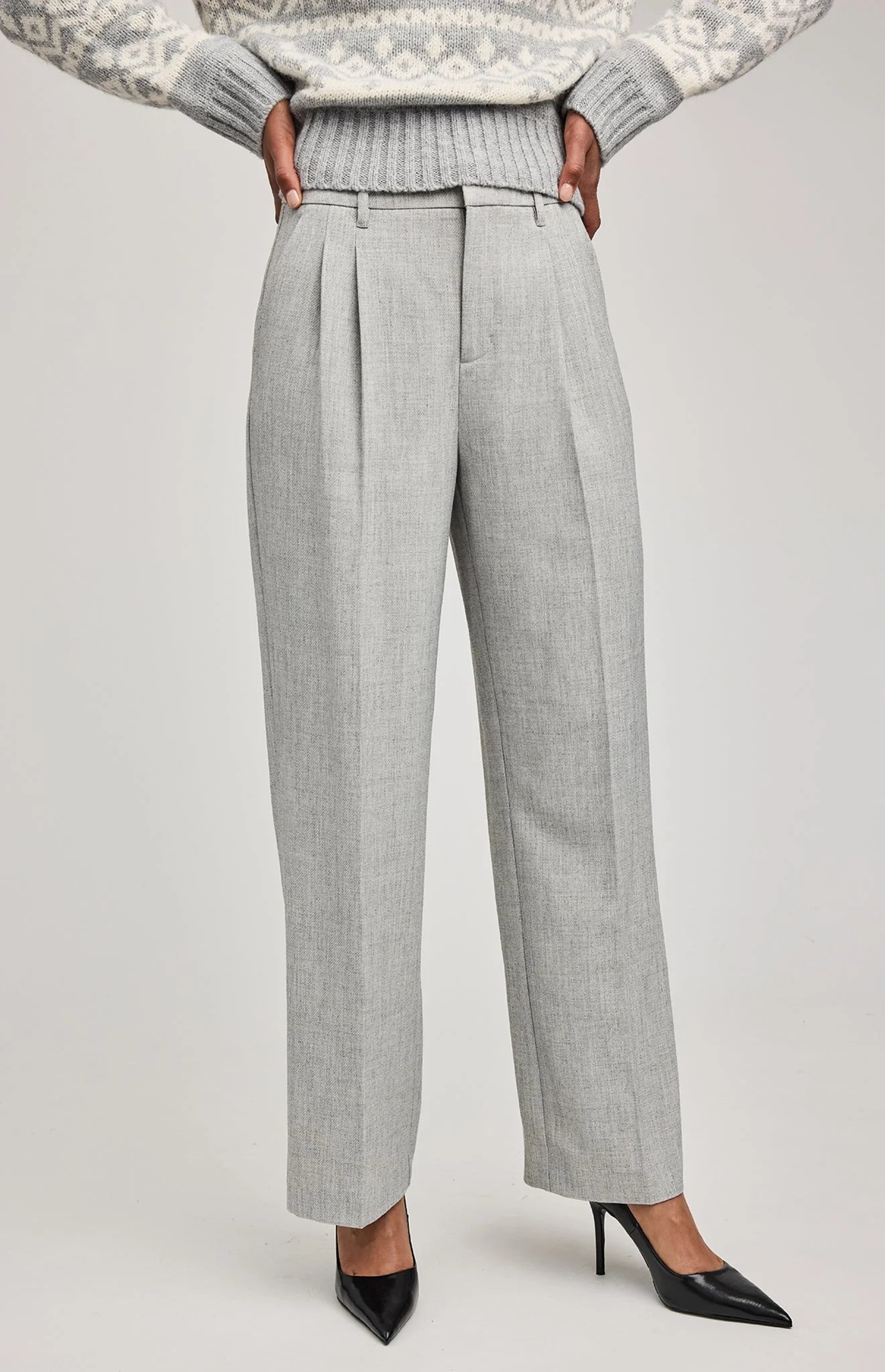 Made of a heathered twill suiting fabric, the Trina is an effortless trouser pant silhouette designed for everyday wear. Features include side seam pockets, front pleats, and back waist darts for a perfectly tailored look. Complete the look with the Jeanie blazer.