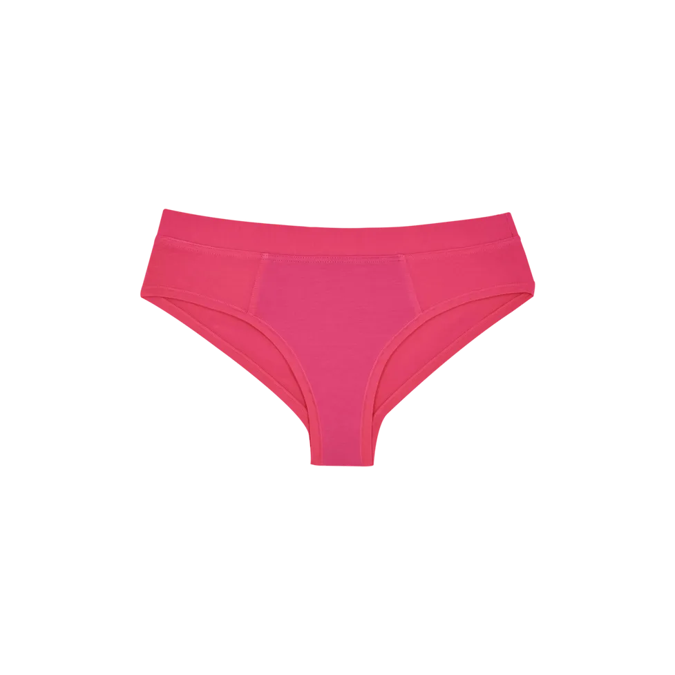 Our cheekiest style outside of a thong, this is a flattering, butt-contouring cut with half-cheek coverage. Soft yet structured, it stays put without digging in. The Cheeky has a low-mid rise with a deeper side, cuffed waistband, and visible front panel.