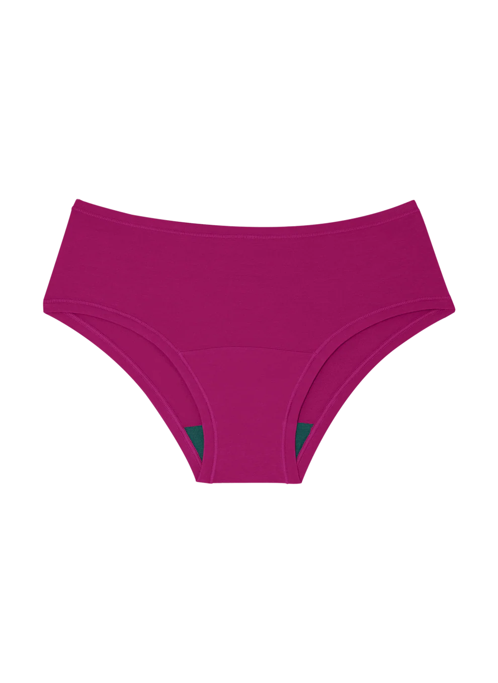 A little less cheeky than the Cheeky, the Hipster is our take on a boyshort with a deep side and slightly cheeky bum. The lightweight single-layer design mirrors our fan-favorite Bikini with a merrow stitch and the perfect amount of stretch. The low-mid rise waist has a subtle curve that dips below your belly—perfect for avoiding extra pressure or stimulation around the abdomen.