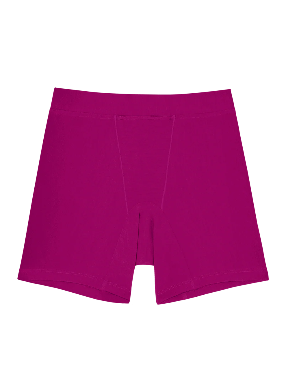 Our Mid Boxer is made for those that value comfort with coverage. High-waisted and extending to your upper-mid thigh, this versatile style is made for lounging, lunging, or anything in between. The fabric-covered, elasticated waistband and elastic-free leg cuffs hold their shape without digging into yours. Features a cute visible front panel for soft yet structured support.
