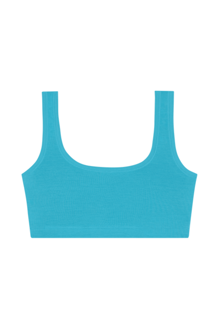Sporty and oh-so-soft, this hardware-free bra is the perfect fit for working out or laying down. With a supportive cuffed underband, wider straps, and a classic scoopneck, the Sporty Bralette is a core basic for your top drawer. Lined in the front with a lightweight, single-layer back, this style is secured with an ultra-stretchy merrow stitch for comfy (and cute) seams that won’t dig in.