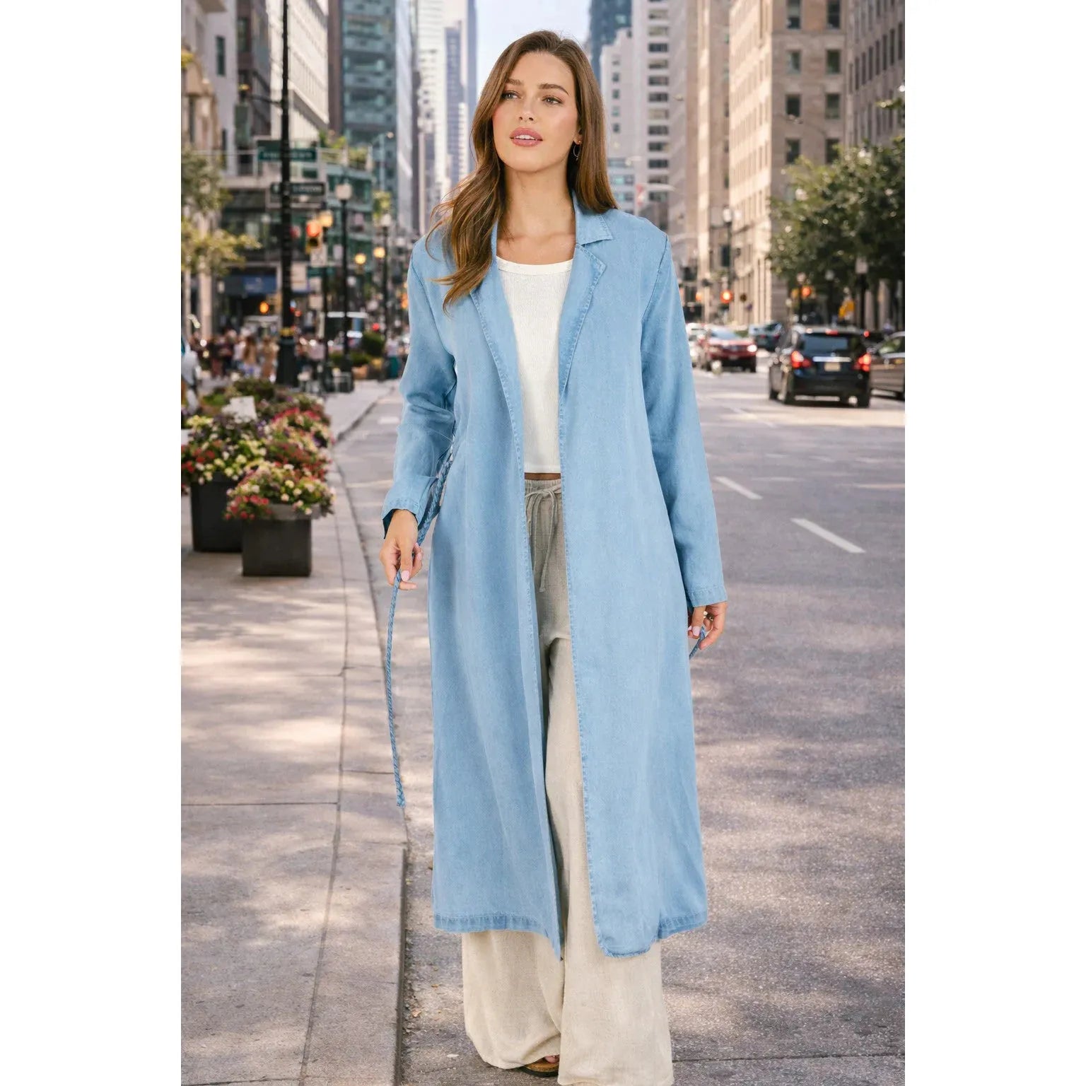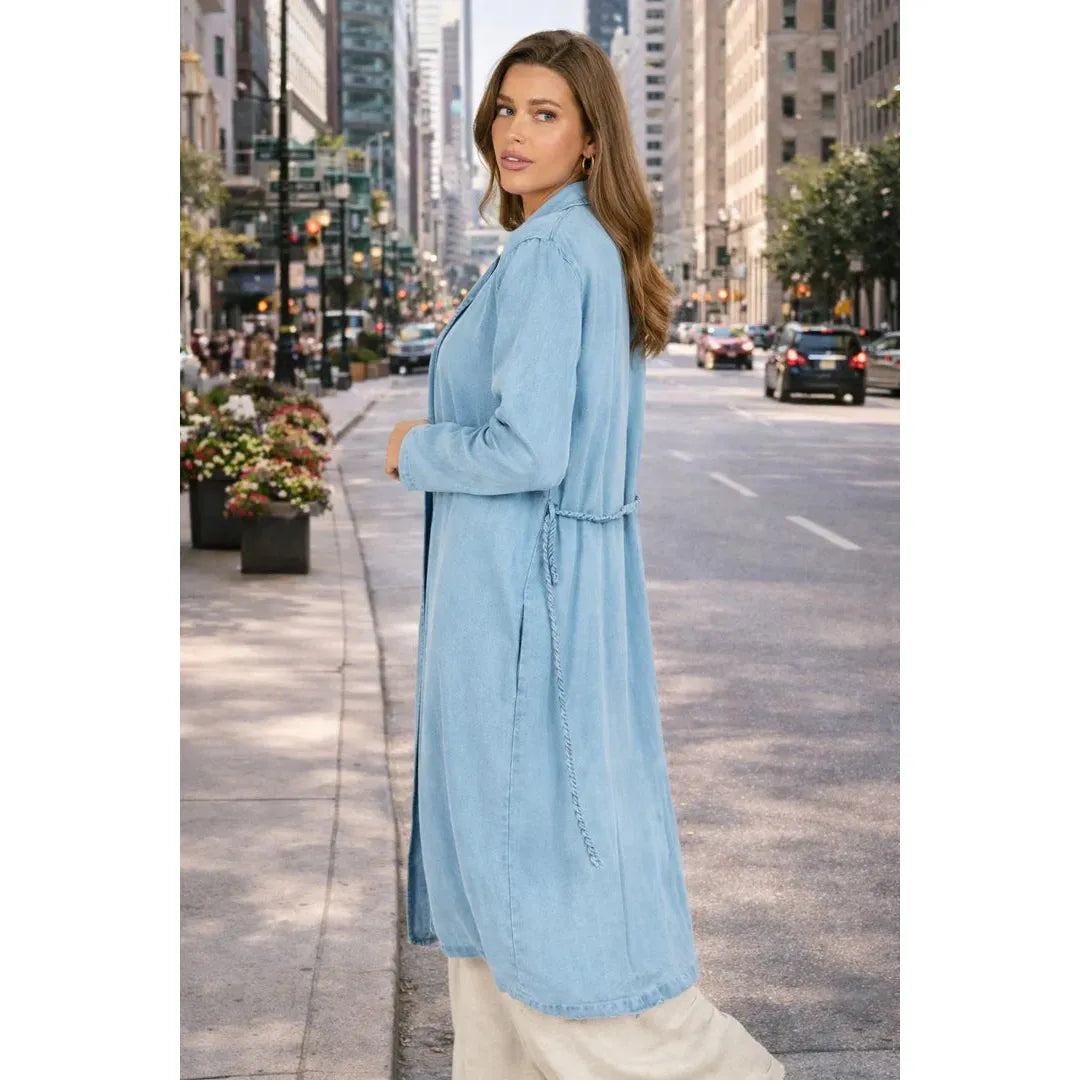 Effortlessly cool with an elevated, laid-back vibe, the It’s Pouring Duster Coat is the perfect lightweight layering piece for spring and beyond. Crafted from ultra-soft, breathable TENCEL™, this long chambray duster drapes beautifully while adding instant polish to any outfit. Designed with an open front, relaxed silhouette, and removable braided belt, it’s the kind of piece you’ll reach for again and again.