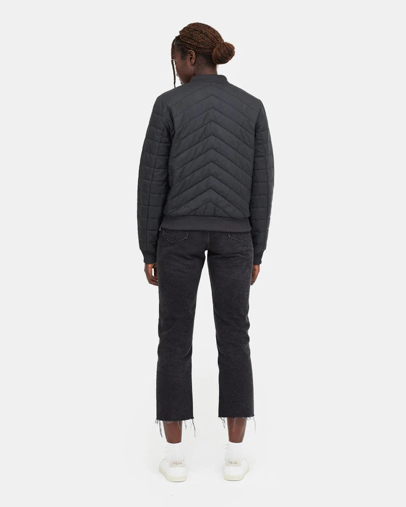 Made for coffee runs or rainy day walks, this sustainable women's bomber jacket is lightweight and water repellent. Made with eco-insulation to help keep your impact low and comfort high.