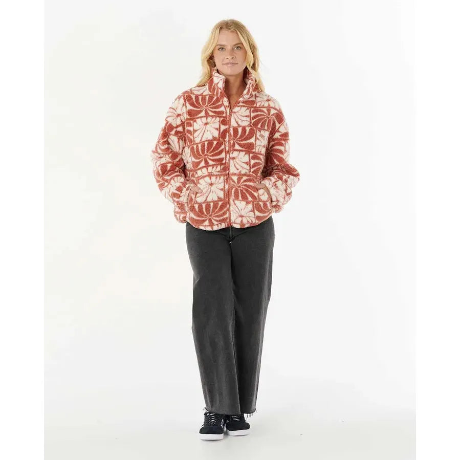 Made from recycled polyester microfleece, this standard-fit polar fleece features an all-over yardage print and silicon badge. A perfect cozy layer for chilly evenings by the ocean or casual outdoor activities.