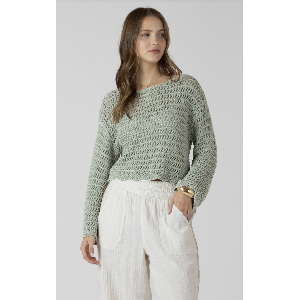 Sophisticated, airy, and full of feminine charm, the Scalloped Hem Open Stitch Sweater by Dex is the perfect transitional piece for your wardrobe. It strikes that rare balance between "cozy knit" and "breathable style," making it a go-to for everything from breezy beach walks to elevated brunch dates.