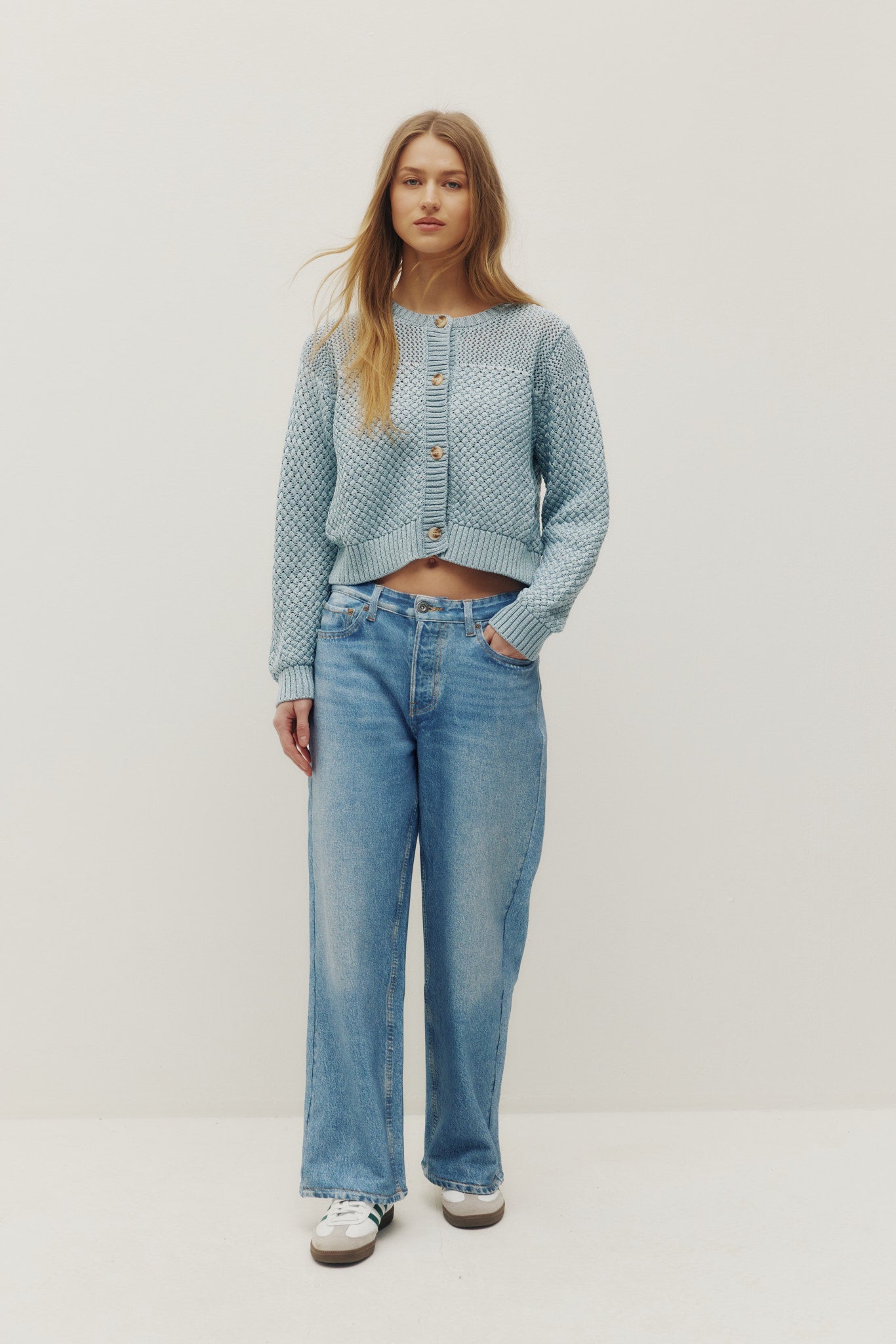 This knit cardigan impresses with its rich texture and subtly retro feel. Its regular fit and slightly cropped length make it easy to layer, perfect for completing a polished, feminine look. A versatile essential that integrates seamlessly into everyday life.