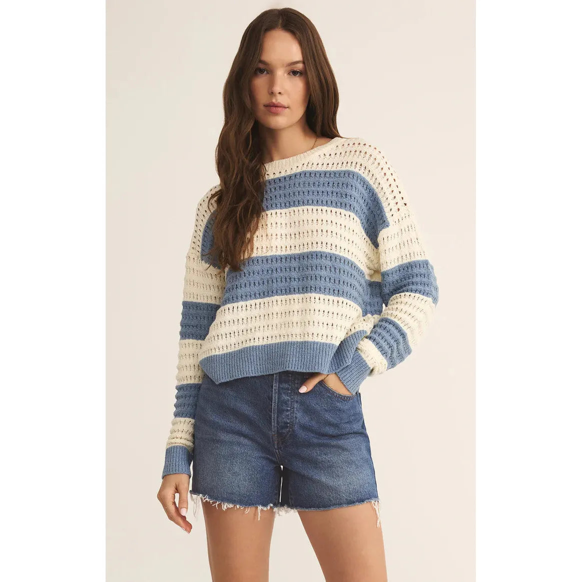 Stripes, texture, and a laid-back feel, this relaxed crewneck sweater checks all the boxes. Made from lightweight flax sweater knit with a yarn-dyed rugby stripe, it’s an easy go-to for everything from coffee runs to beach days.