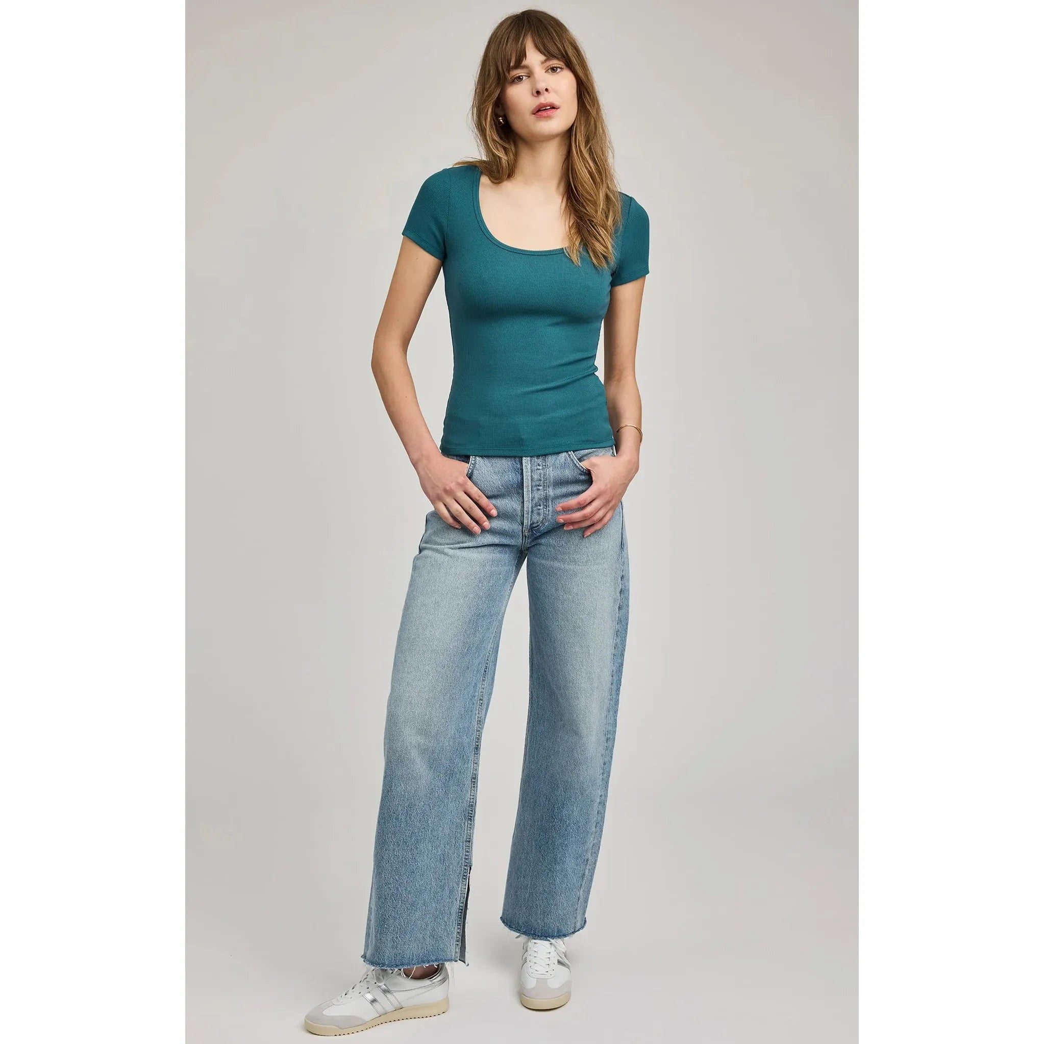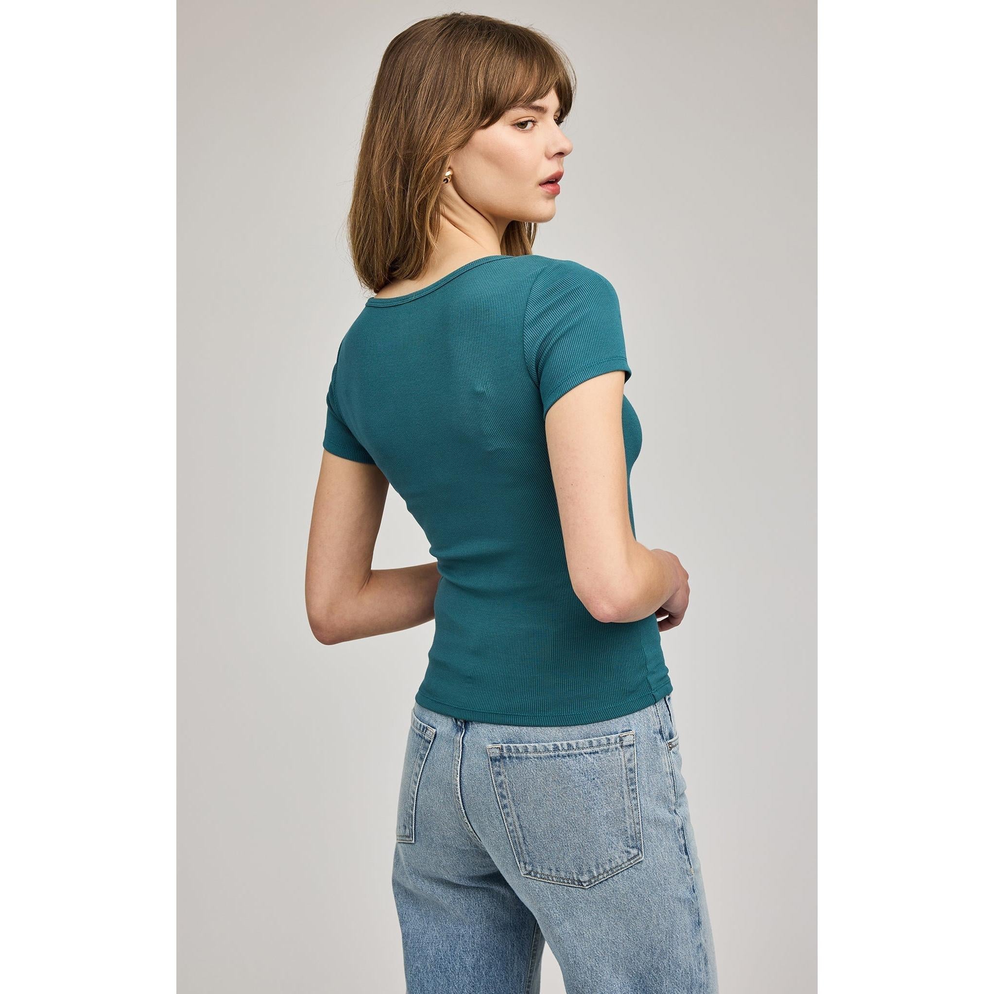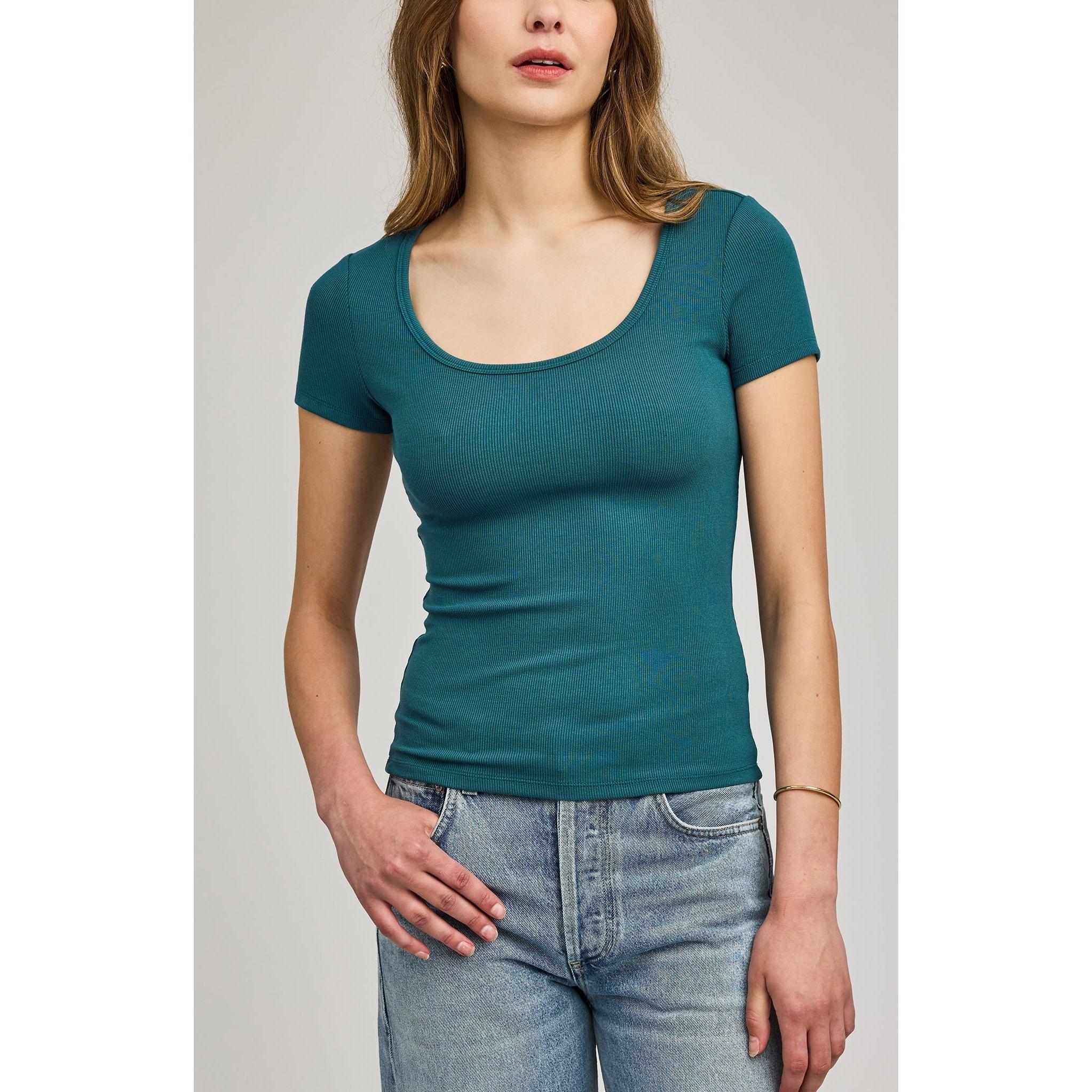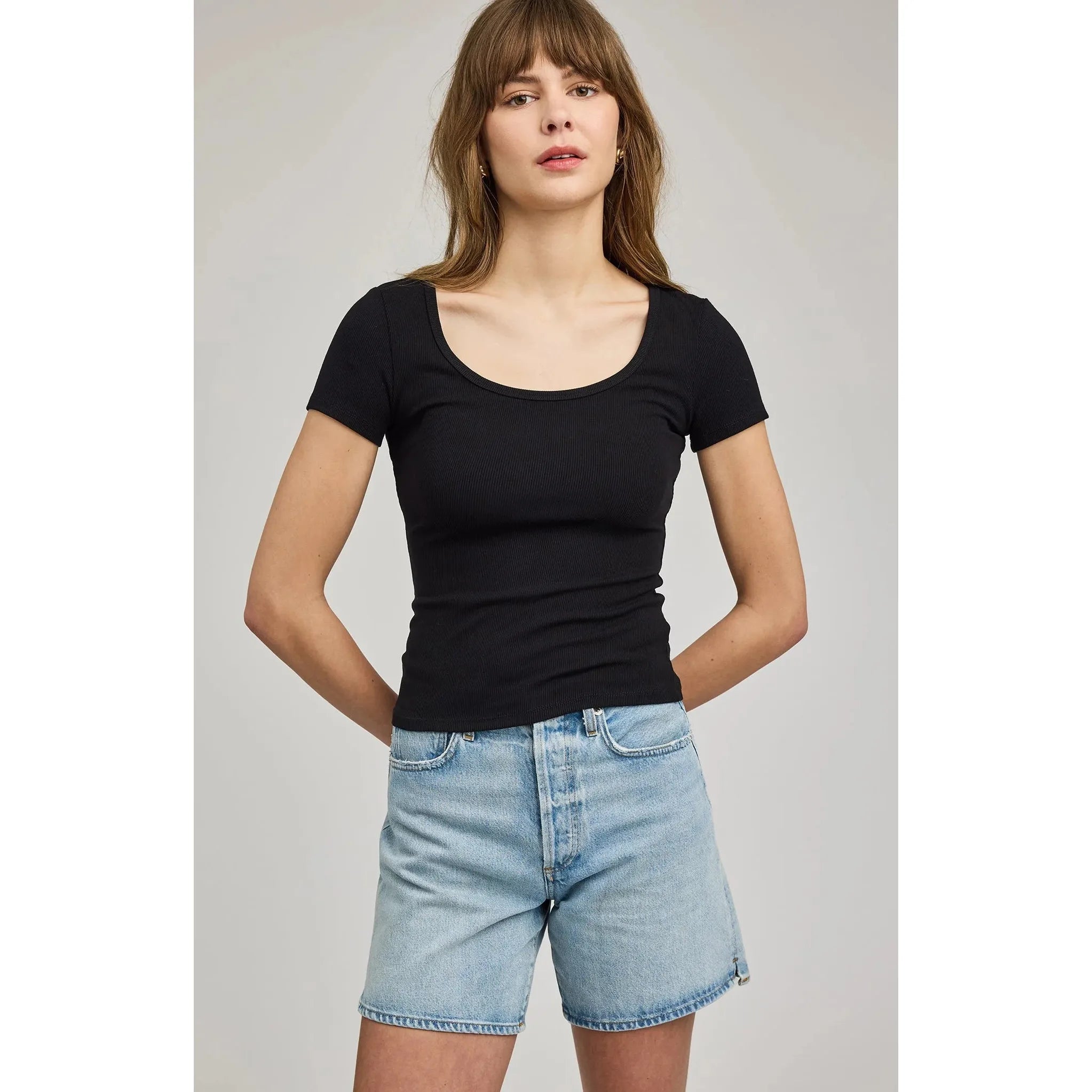 The Shayleen top is made of a stretchy ribbed fabric that hugs the body. The effortless scoop neckline is perfect for everyday wear or dressed up.