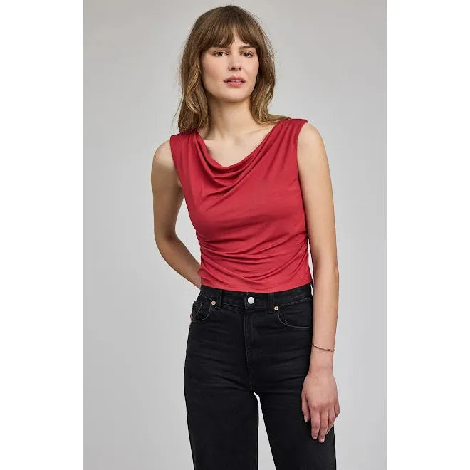 The Gentle Fawn Cassidy Top Draped Sleeveless is an essential, elegant basic, offering a soft draped neckline and a flattering, slightly fitted shape for versatile styling. This top is designed to be a sophisticated, easy-to-wear piece that works for a variety of occasions, from everyday wear to a polished evening out.