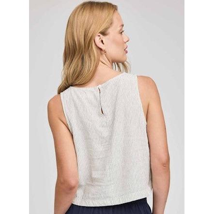 The Leanna tank is crafted from a lightweight linen blend fabric for an effortless look and feel. The vertical yarn-dyed stripes add a classic, refined texture. This piece is a closet essential that pairs beautifully with the Francesca pants for a coordinated outfit.