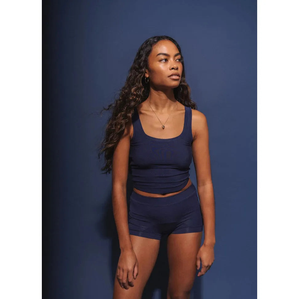 Workout tank, undershirt, casual top…the options are endless with our Sporty Crop Tank. Designed for easy movement, this soft-and-stretchy scoopneck is front-lined with a lightweight back and comfy straps that won’t dig in. Hits mid-waist and pairs perfectly with Boxers, Bike Shorts, or high rise undies.