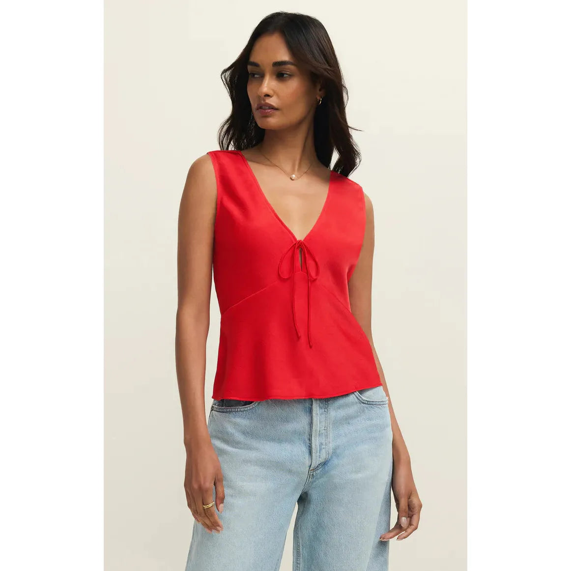 Soft and silky with a subtle sheen, this satin tank brings a touch of femininity to your look. The front tie detail adds just the right amount of interest, whether worn alone or layered under a jacket for an elevated finish.